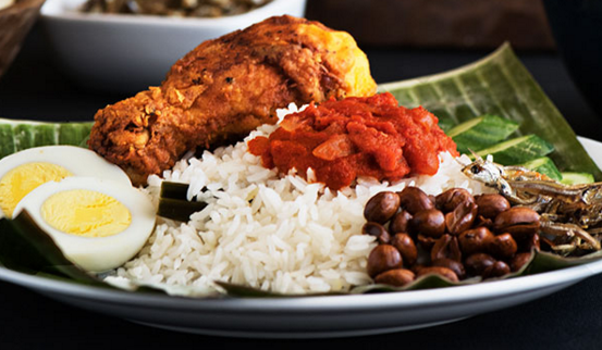 Malezijsko jelo: Nasi lemak with fried chicken (“Nasi lemak, ayam goreng”).Slika uzeta iz ovog članka.